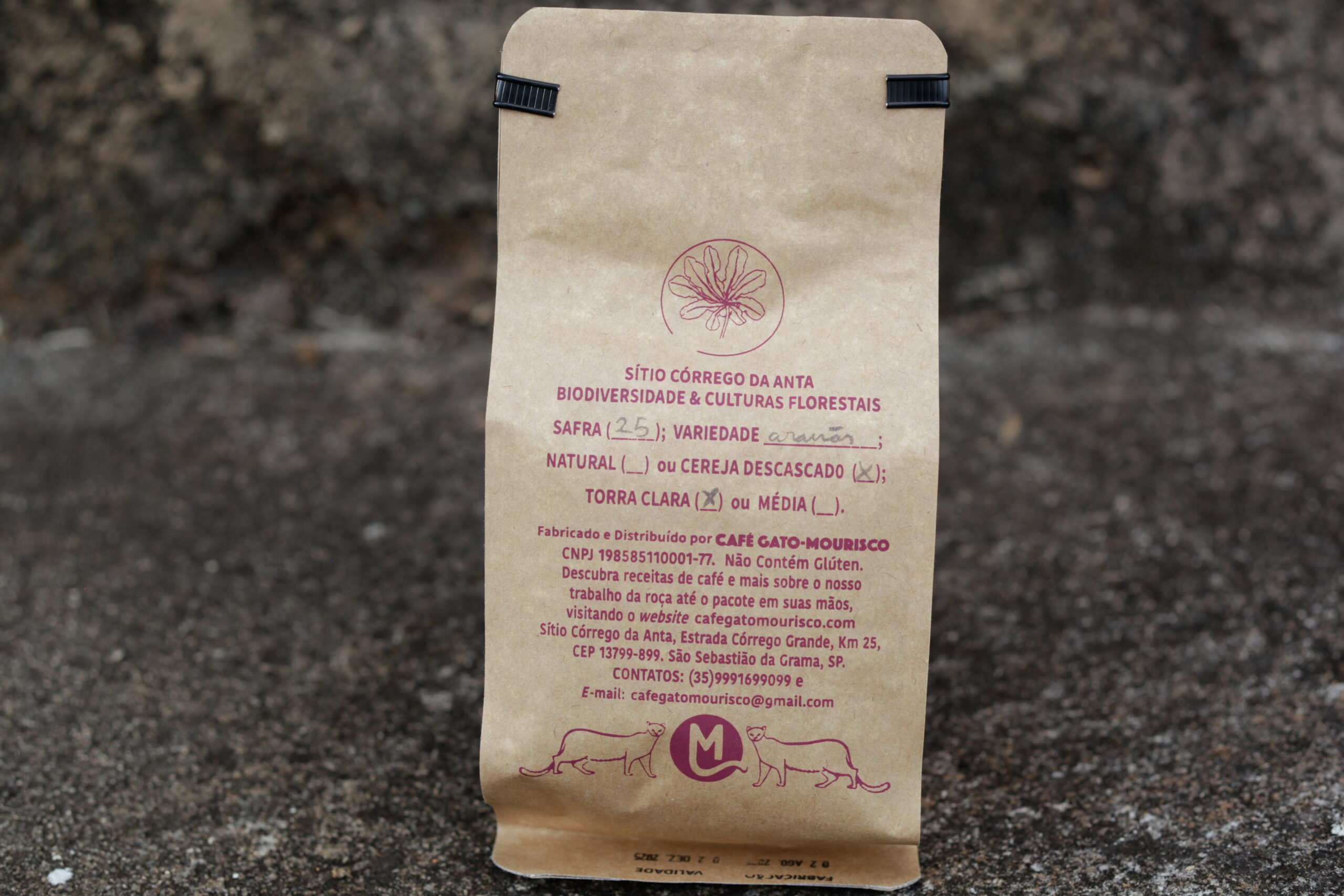 A Café Gato-Mourisco oferece a você 250g da variedade aranãs em grãos cereja descascado, do Sítio Córrego da Anta.