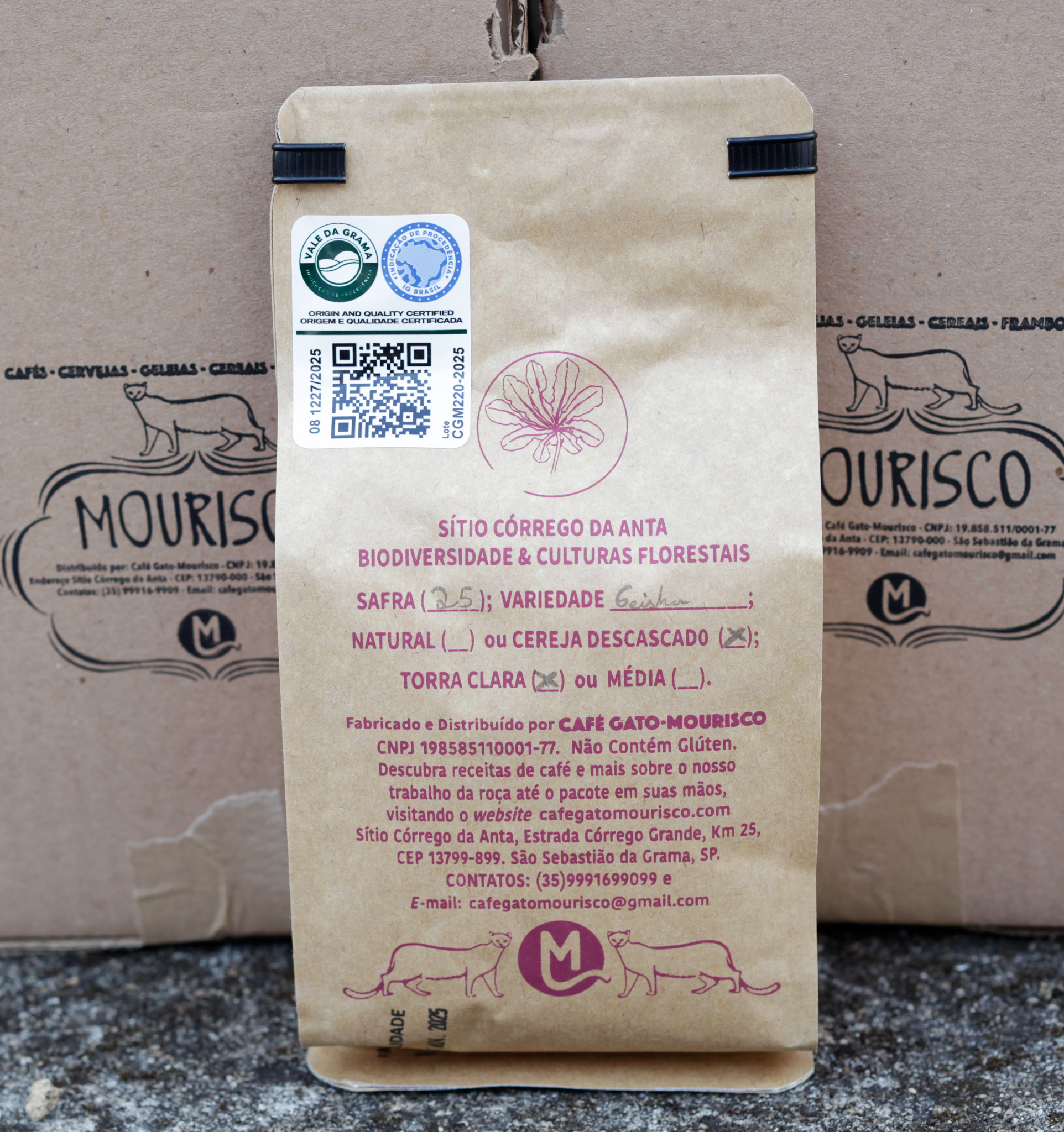 Os café Gato-Mourisco têm a sua rastreabilidade possível pelo selo IG Vale da Grama. Segundo o Q grade José C. Fante, o café variedade geisha linhagem Costa Rica, do Sítio Córrego da Anta, é brilhante doce, suculento e vigoroso. Suas principais notas sensoriais são mel, caramelo, tâmaras, ameixa passa e frutas silvestres.