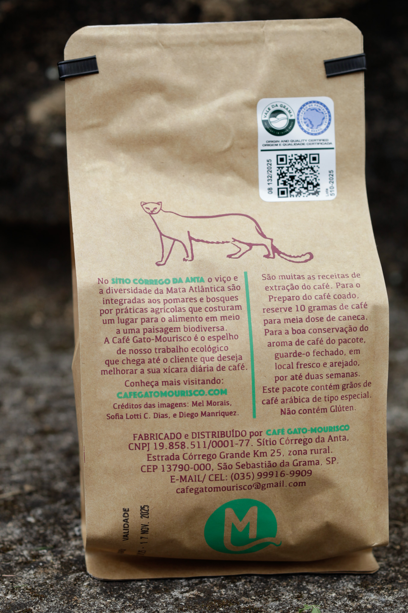 A Café Gato-Mourisco oferece a você neste pacote 500g de café em grãos da variedade geisha, de linhagem proveniente da Costa Rica